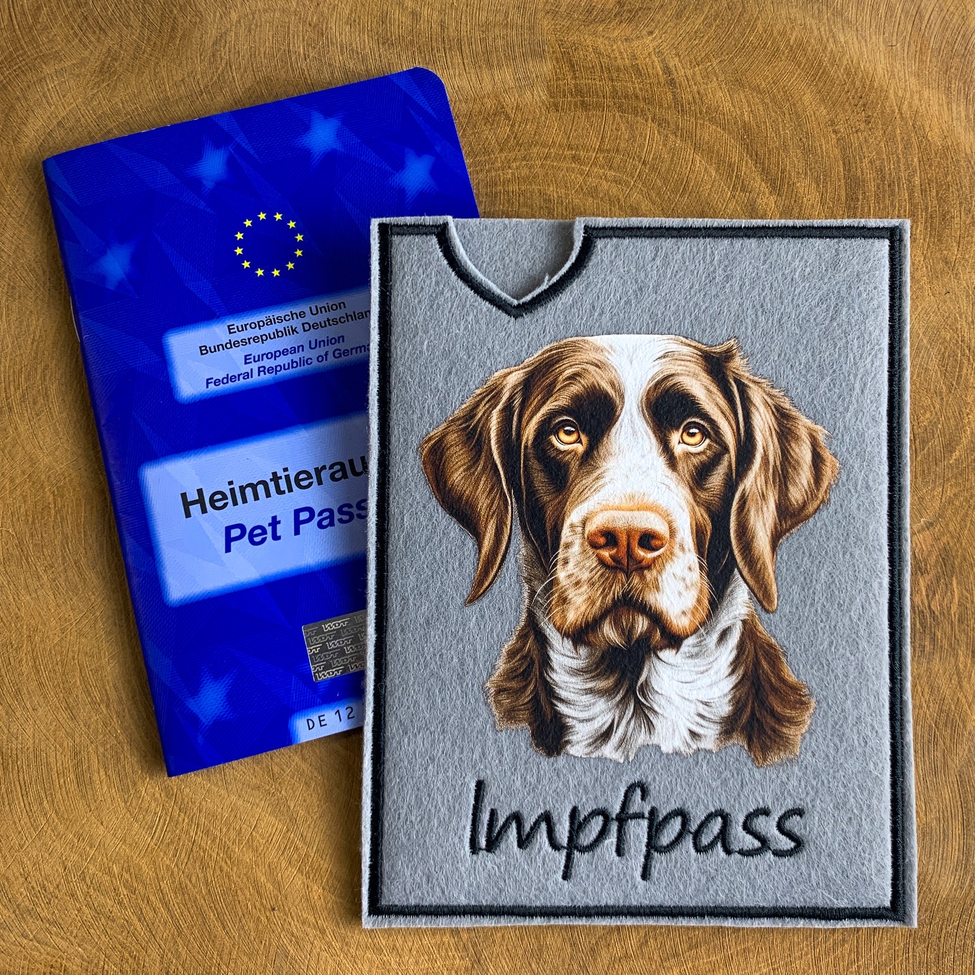 Mit unserer robusten und liebevoll gestalteten Impfpasshülle bleibt der Impfpass deines Deutsch Drahthaar geschützt, ordentlich verstaut und immer griffbereit.