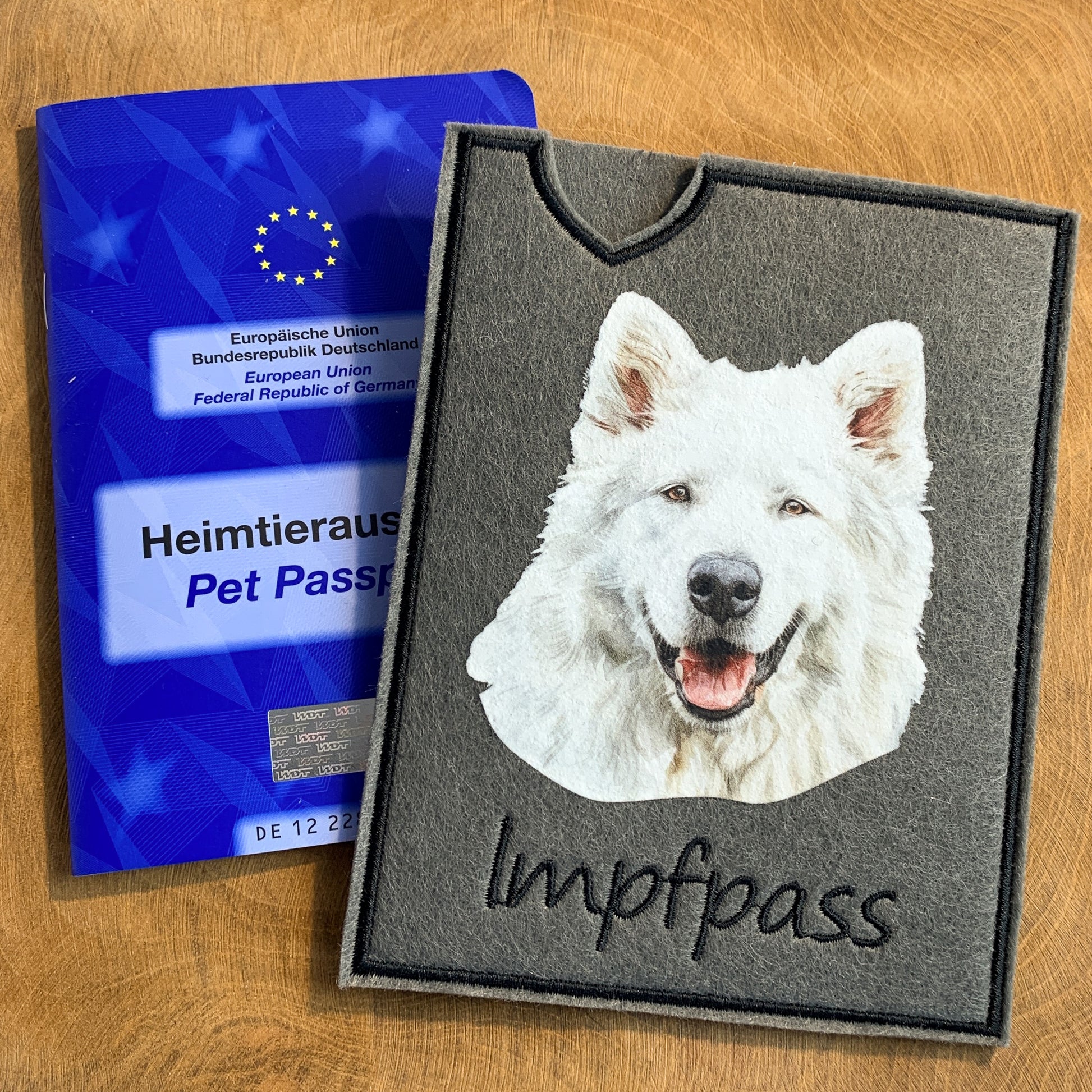 Jede Impfpasshülle wird von uns hergestellt - und wenn du magst ganz individuell mit dem Namen deines Hundes. Wir geben unser Bestes, dass auch dein Hund seine ganz persönliche Hülle für seinen Heimtierausweis bekommt.