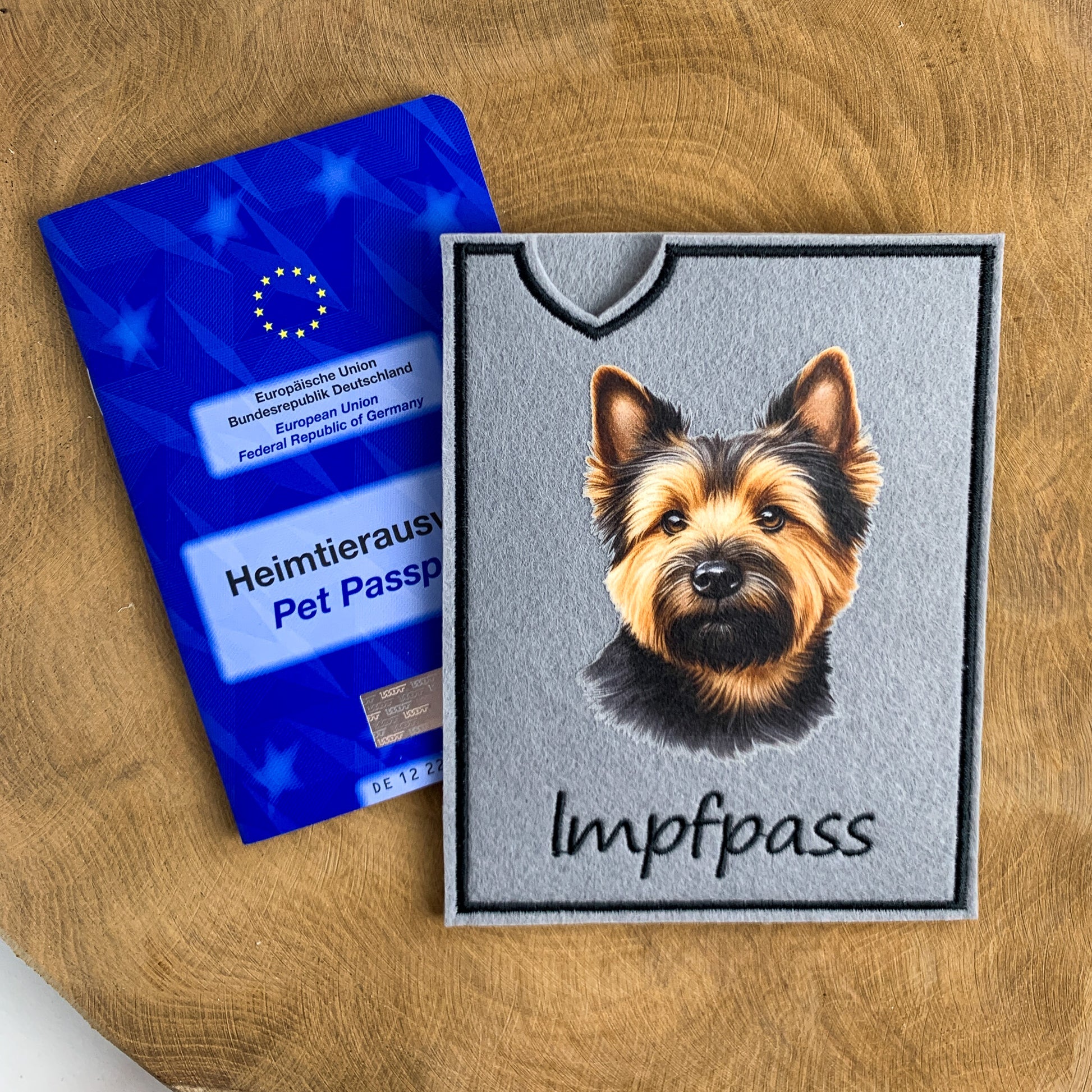 Mit unserer robusten und liebevoll gestalteten Impfpasshülle bleibt der Impfpass deines Norwich Terriers geschützt, ordentlich verstaut und immer griffbereit.