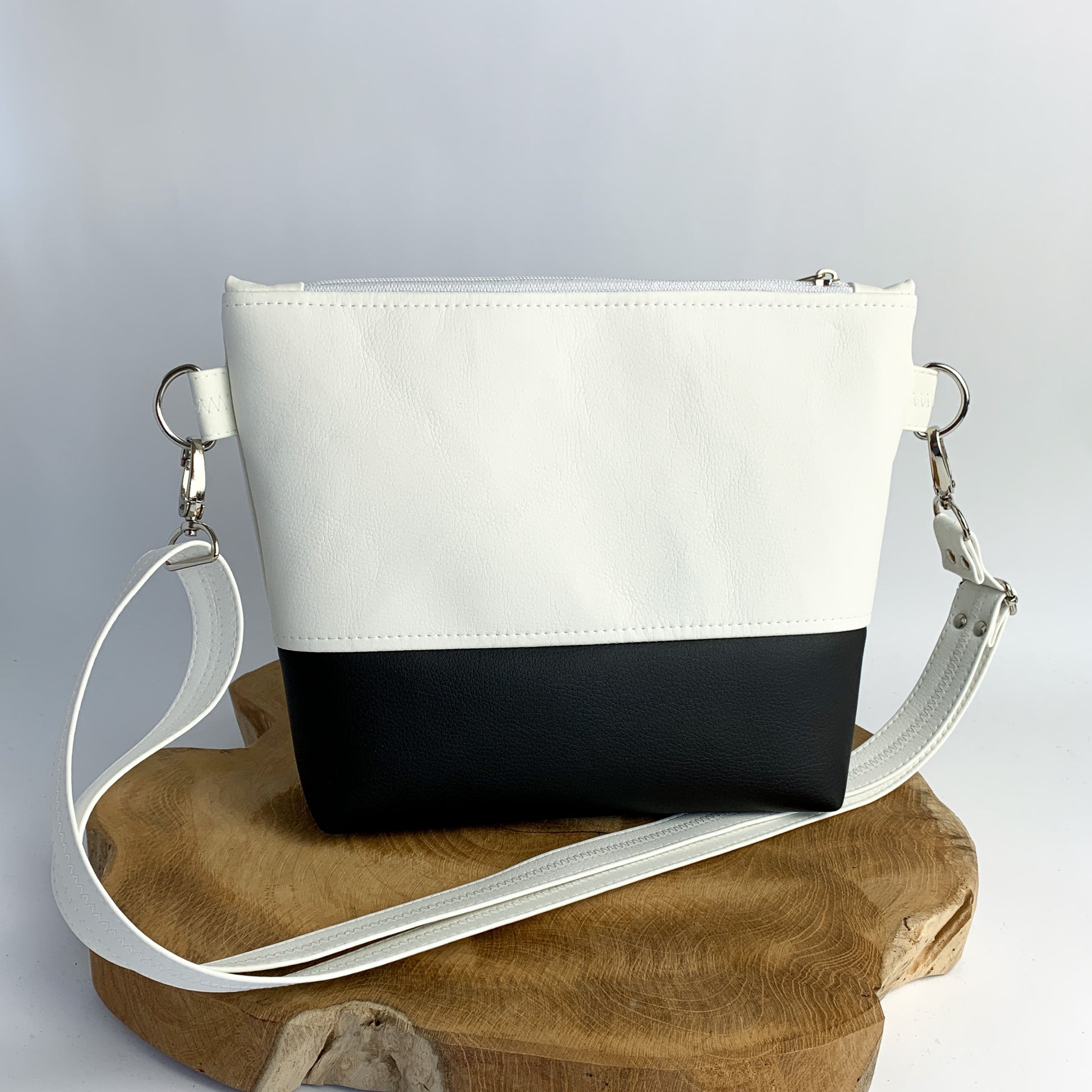 Beide Taschen haben oben einen Reißverschluss und einen verstellbaren Schultergurt (60–130 cm). Der Schultergurt ist ca. 2,5 cm breit und ebenfalls aus Kunstleder selbst genäht, passend zur Tasche.